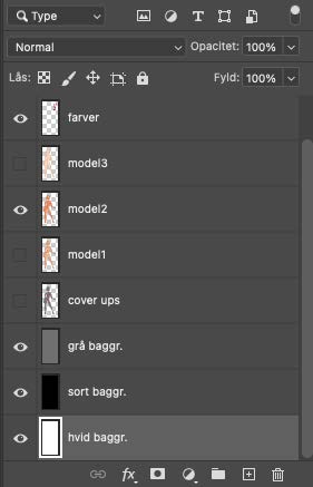 I know what you’re thinking.. Naming the layers?? ugh, can’t be bothered! But thank me later when you figure out how much time and frustration it saves you in the end. Here’s a picture of what my layers look like when I start and when I’m a bit further into designing. My Photoshop is in Danish because I honestly never got around to change it into English. This is also why I use a great mix of English and Danish words, some would call it Danglish, sorryyy! |